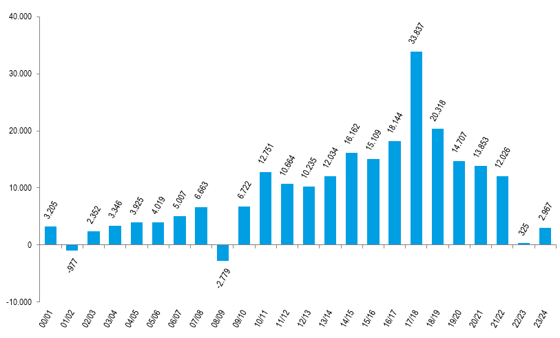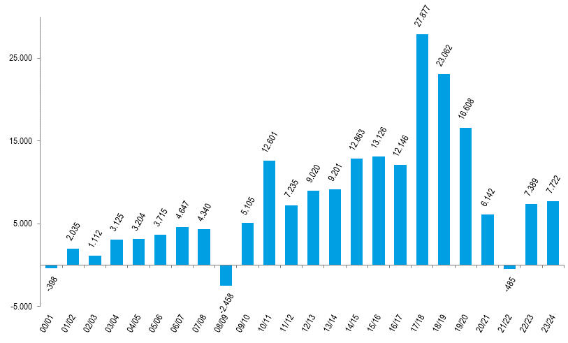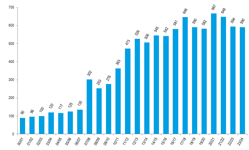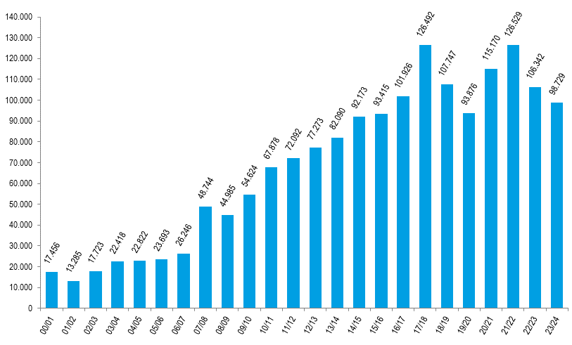 Umsatz, EBITDA und Operativer Cash Flow in T€; Mitarbeitende zum Ende des Geschäftsjahres